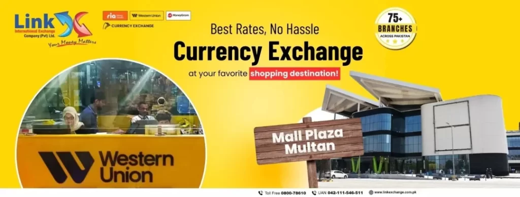 Whether you need reliable money exchange services in Mall Plaza Multan or near Gulgasht Colony, Link International Currency Exchange Multan Branch is here to serve you. For inquiries or assistance, contact us today at our currency exchange Multan contact number and experience seamless financial transactions.